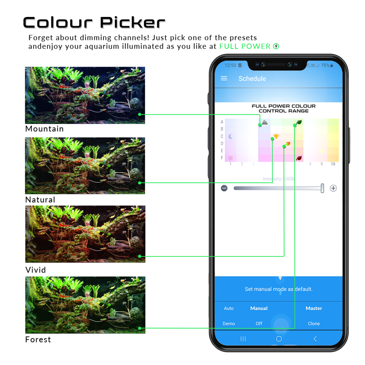 Skylight HYPERBAR es una serie de luces para terrarios con un diseño innovador. Instala la app SL Control, establece un horario diario y disfruta de tu terrario. Con un estilo montañoso, natural, colorido o forestal, con la lámpara HYPERBAR, no tendrás que preocuparte por si el color de la luz se adapta a tu tipo de terrario. Es la única lámpara del mercado en la que simplemente eliges una configuración y el sistema electrónico controla los LED para que disfrutes de toda su potencia, independientemente de tus preferencias.
