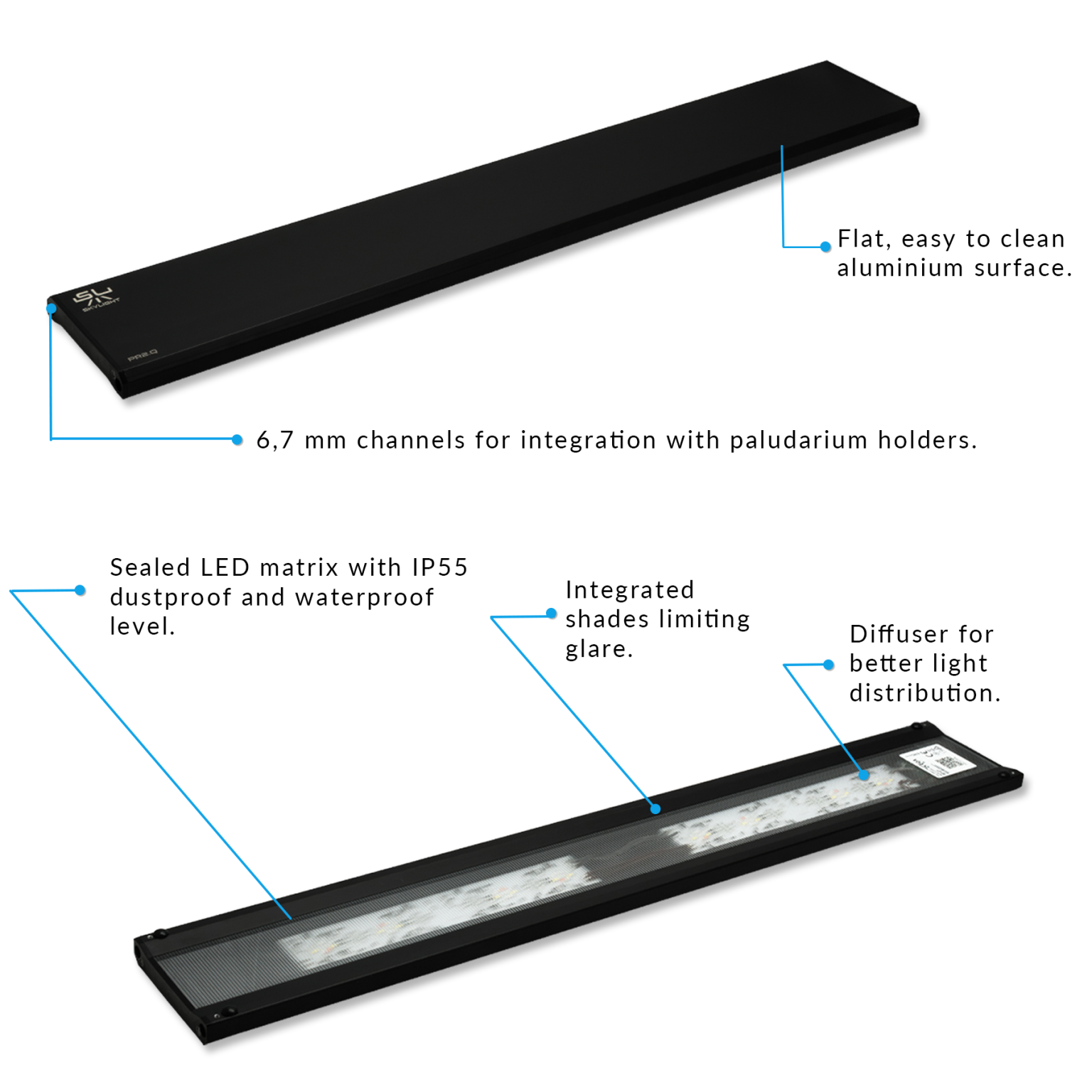 La lámpara presenta una estética minimalista, un controlador wifi integrado compatible con aplicaciones de Android e iOS, y una fuente de alimentación SELV de 12 voltios ultrasegura; estas son solo algunas de sus muchas ventajas. Ofrece una reproducción de color extremadamente natural para plantas y peces, además de la posibilidad de ajustar el balance de blancos y la temperatura de color, lo que permite personalizar la luz emitida según las preferencias de forma fácil e intuitiva.