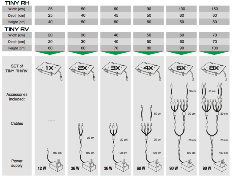 Recuerde que, en un vivario más grande, obtendrá los mejores resultados combinando ambos modelos SKYLIGHT TINY: RV y RH.
